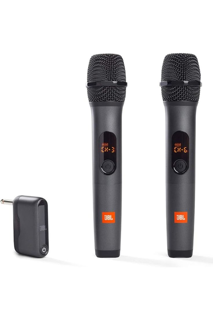 – Each microphone uses 2 AA-size batteries (included)